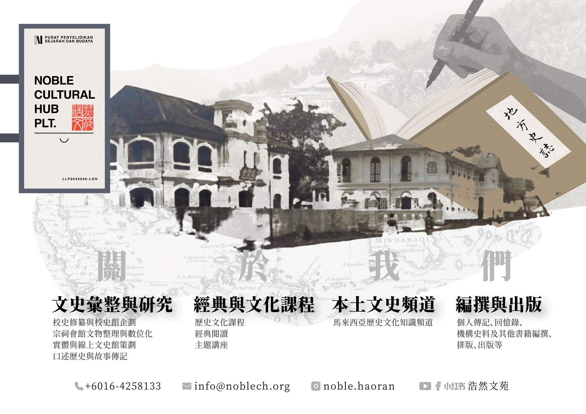 Noble Cultural Hub PLT was founded in Penang in 2025 as an independent space dedicated to cultural research and the creative humanities. Guided by the motto “Unearth the root of culture; Revive the cultural and historical treasure.” We are committed to uncovering Malaysia’s scattered cultural treasures, preserving fading memories, and sharing them in ways that are both academically rigorous and publicly engaging.